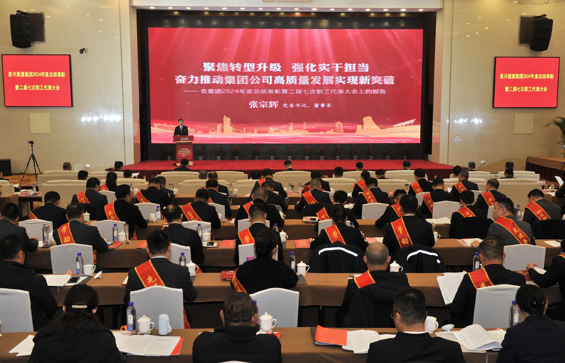 2月27日,365英国上市集团2024年度总结表彰暨二届七次职工代表大会在开元凤鸣山庄召开。枣庄市国资委党委副书记、副主任王次青出席并讲话。365英国上市集团党委书记、董事长张宗辉作了题为《聚焦转型升级 强化实干担当 奋力推动集团公司高质量发展实现新突破》的工作报告。党委副书记、总经理李守广主持会议。党委副书记、监事会主