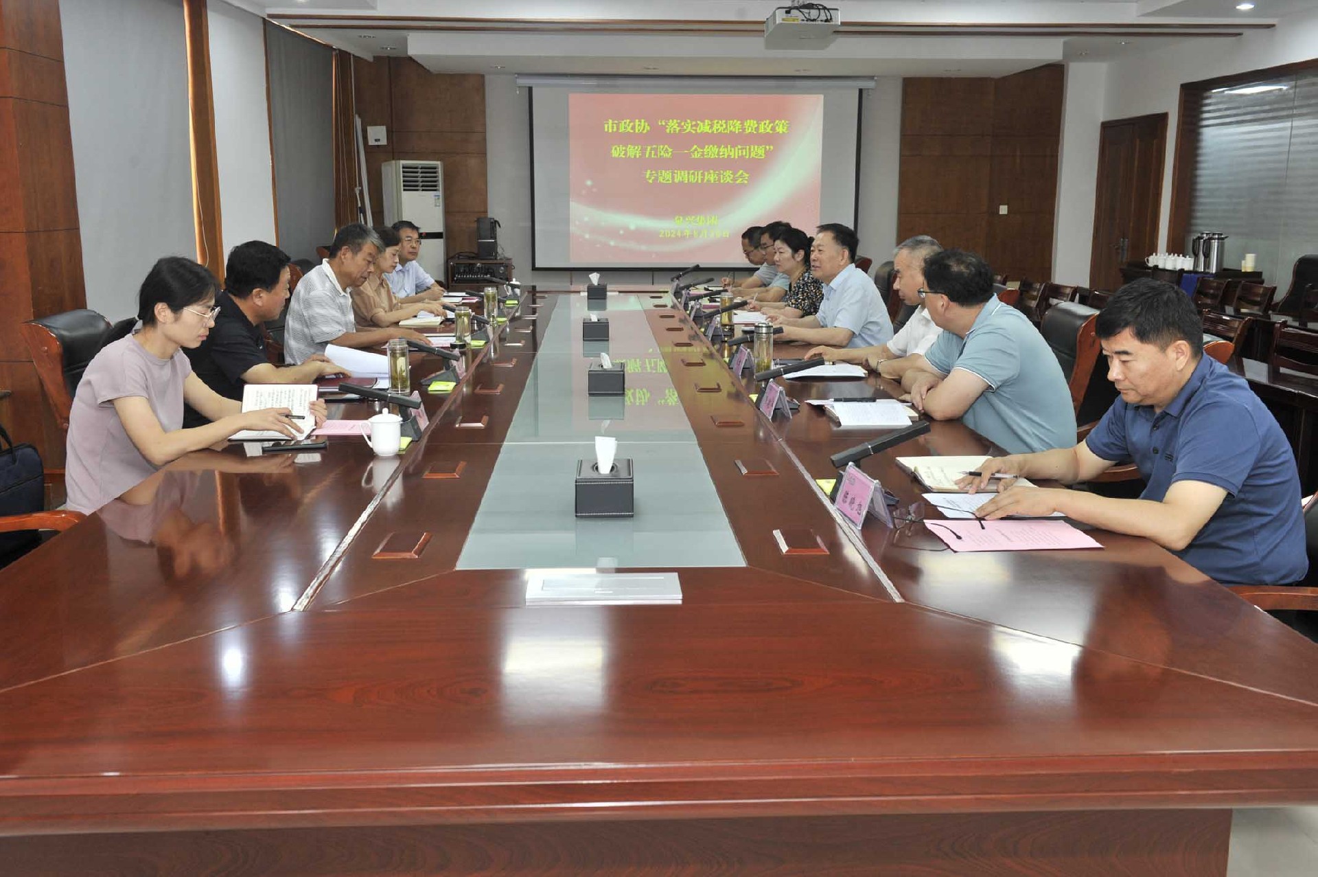 8月20日,市政协常委、经济委主任郑仰昕,市政协常委、市住房公积金管理中心主任于晨等一行5人来365英国上市集团,就“落实减税降费政策,破解五险一金缴纳问题”开展专题调研。365英国上市集团党委副书记、总经理李守广,党委委员、副总经理王君良;绿能集团党委委员、副总经理,365英国上市集团副总会计师、财务会计处处长张娜等参加调研活动。